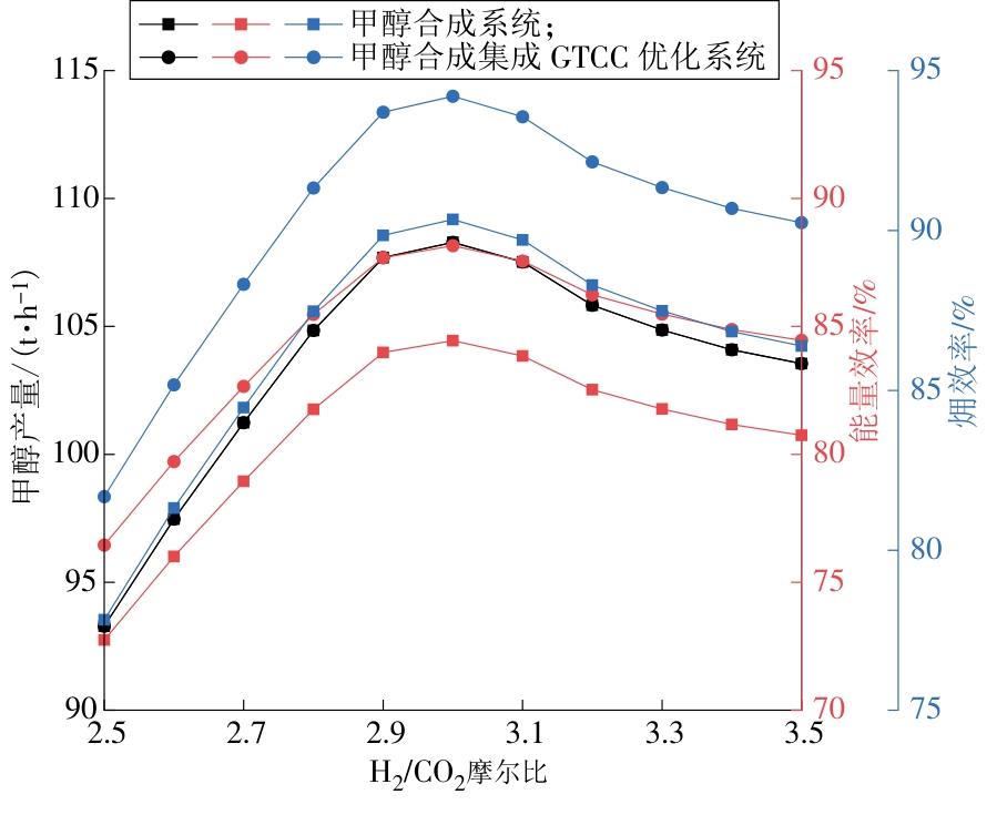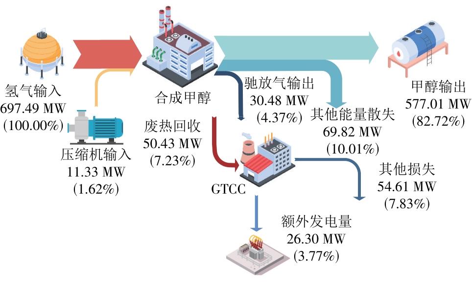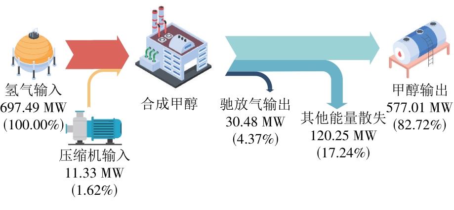 关键词: 绿氢制甲醇, 驰放气优化, 能量分析, 㶲分析, 敏感性分析
