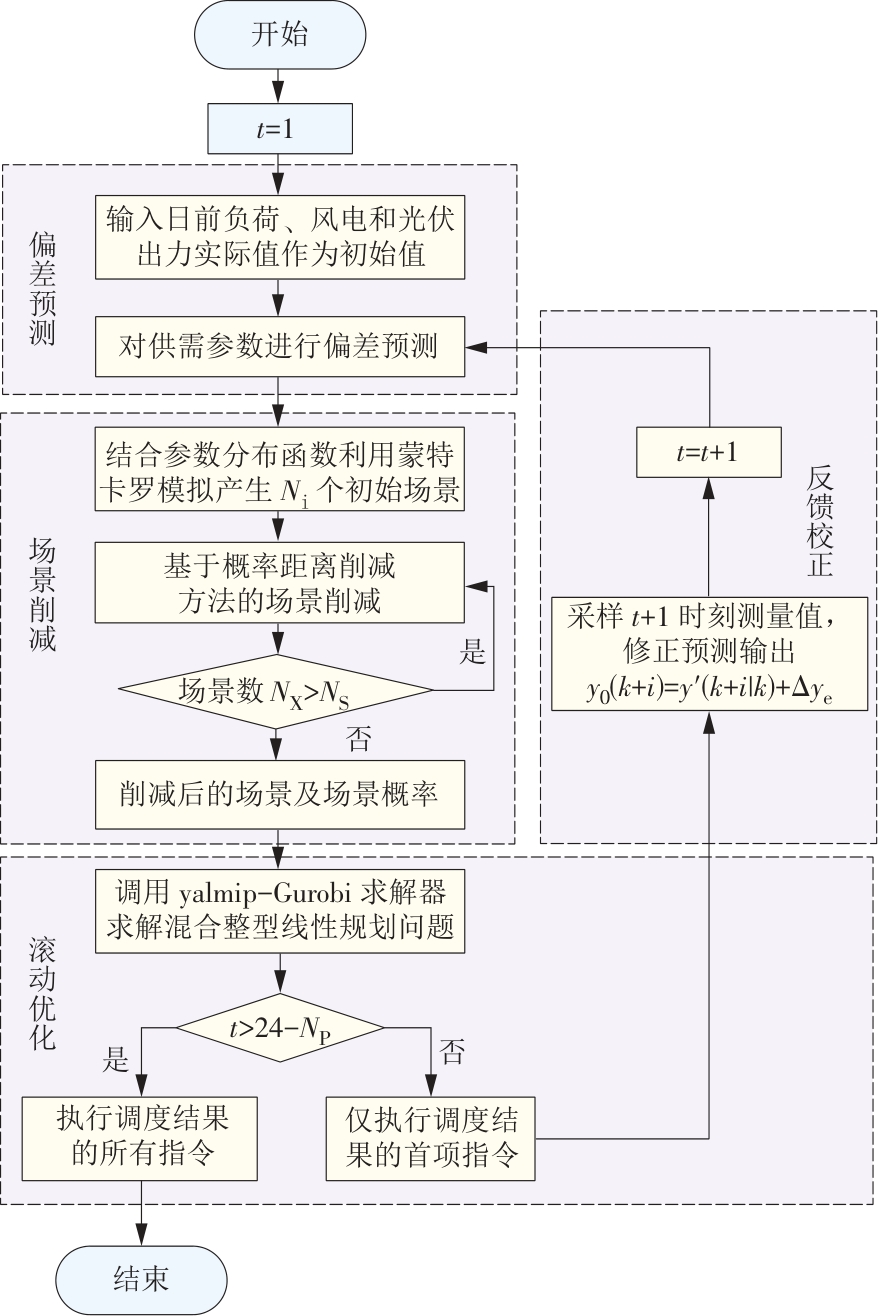 基于多目标分层优化求解方法,兼顾系统平衡与调度经济性,构建海上能源岛多能互补系统分层协同优化模型。为应对风电与光伏出力的波动性与随机性对系统调度的影响,采用随机模型预测控制(SMPC)方法对海上能源岛系统调度进行优化求解。提出一种自适应变步长SMPC的调度方法,该方法在SMPC滚动优化环节,通过偏差参考系数追踪实时的调度偏差程度并据此动态调整滚动优化步长,解决了传统SMPC调度方法在滚动优化环节存在的调度精度缺失与易陷入局部优化的问题,兼顾了调度的精确性与全局性。仿真结果表明,该方法可有效提升调度精度,缩短计算时间。