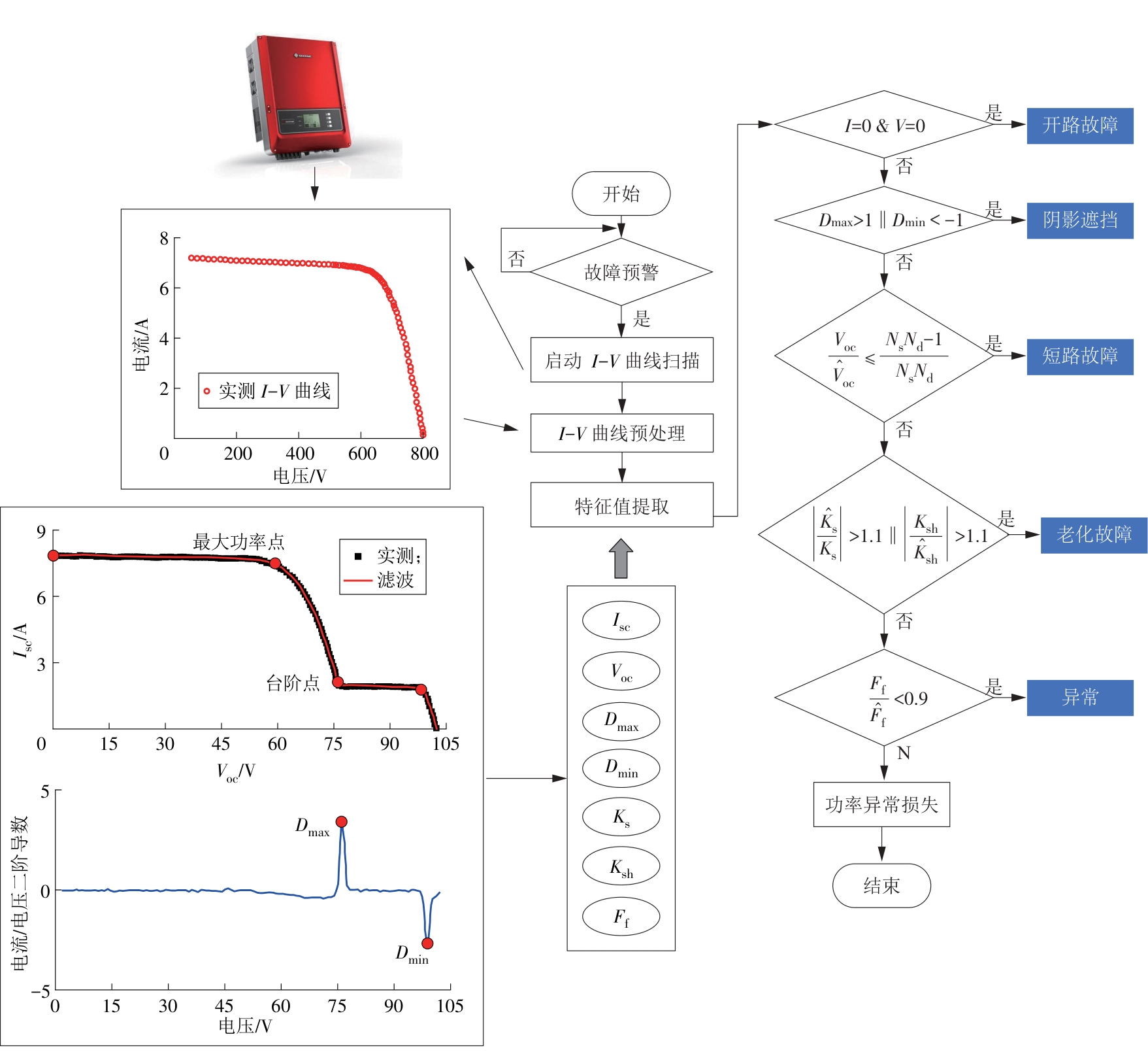 CHEN X, JIANG M, DING K, et al. Fault prediagnosis, type identification, and degree diagnosis method of the photovoltaic array based on the current-voltage conversion[J]. IEEE Transactions on Power Electronics, 2024, 39(12): 16708-16719.