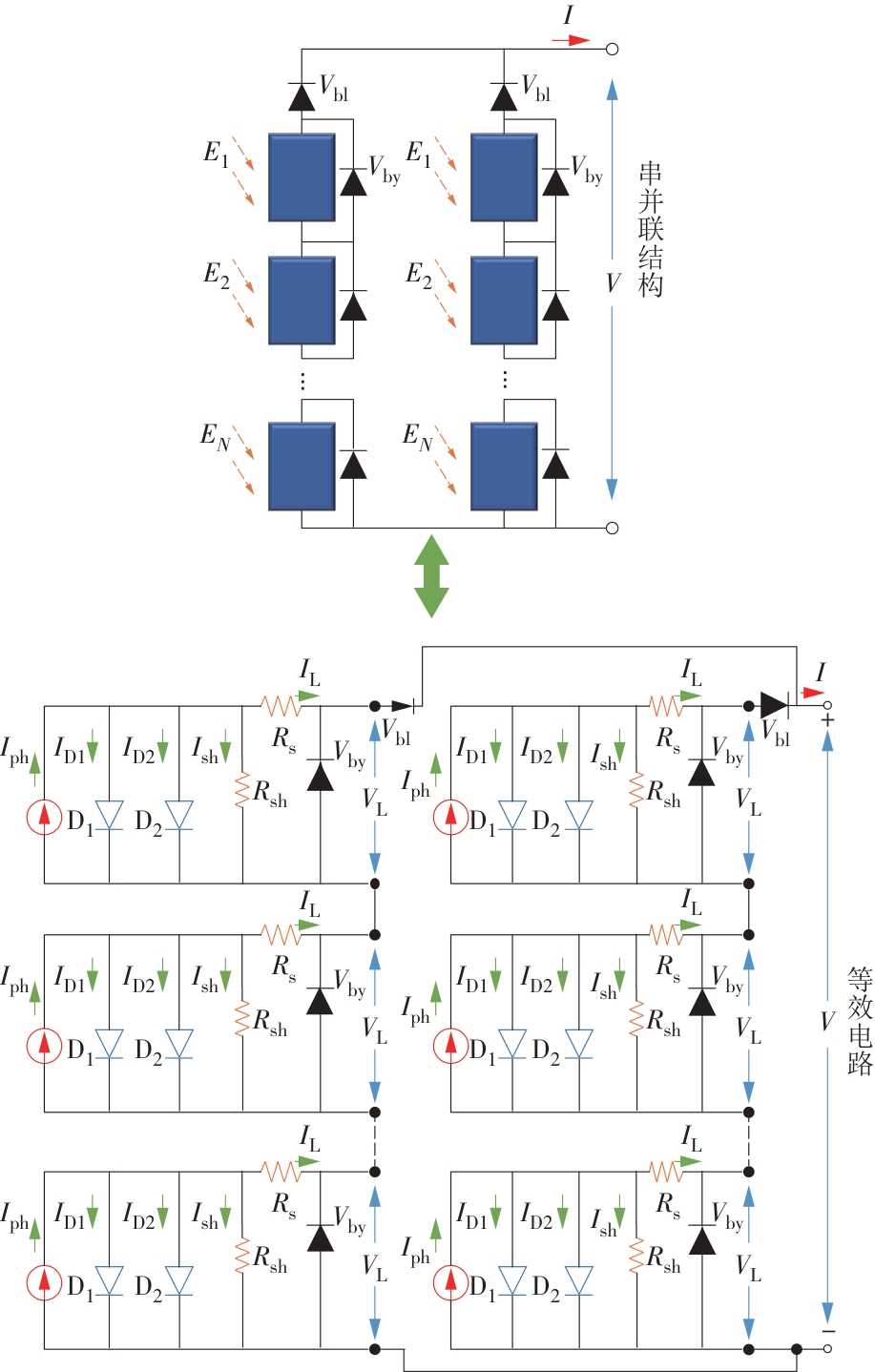 CAMPANELLI M B, OSTERWALD C R. Effective irradiance ratios to improve I-V curve measurements and diode modeling over a range of temperature and spectral and total irradiance[J]. IEEE Journal of Photovoltaics, 2016, 6(1): 48-55.