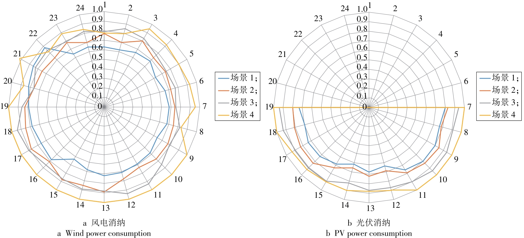 | 场景 | 购电成本/元 | 碳交易成本/元 | 充电成本/元 | 惩罚成本/元 | 光伏消纳率/% | 风电消纳率/% | 碳排放量/kg |